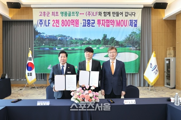 [스포츠서울∣조광태기자] 전남 고흥군(군수 공영민)은 12일 고흥 썬밸리리조트에서 ㈜LF와 ‘고흥 신곡리 골프 & 리조트 조성사업’의 원활한 추진을 위한 투자협약(MOU)을 체결하고, 고흥군 최초의 골프장 조성사업을 본격 추진한다고 밝혔다.