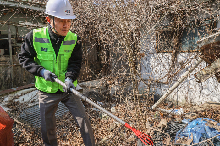 이날 김진태 지사는 본격적인 철거에 앞서 장갑을 끼고 빈집 내부에 방치된 폐기물과 적치물을 직접 수거하는 등 현장 정리 활동에 참여했다.