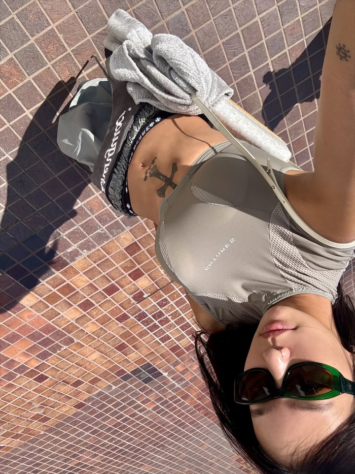 무엇보다 배부터 명치까지 이어진 십자가 모양 타투가 눈길을 사로잡았다. 효린은 과거 해당 타투가 어린 시절 수술로 남은 흉터를 가리기 위해 새긴 ‘커버 타투’라고 밝힌 바 있다.