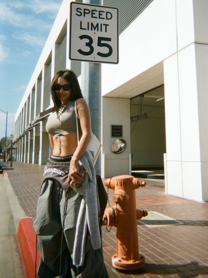 공개된 사진 속 효린은 크롭톱과 루즈한 팬츠를 매치한 스타일로 거리에 서서 다양한 포즈를 취하고 있다. 선글라스를 착용한 채 강렬한 햇빛 아래 서 있는 모습에서 건강미 넘치는 분위기를 자아냈다. 특히 군살 없는 허리 라인과 선명한 복근이 시선을 끌었다.