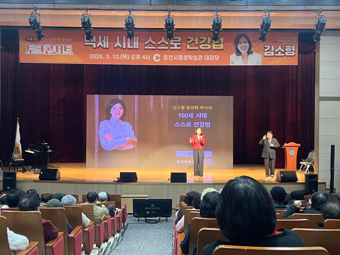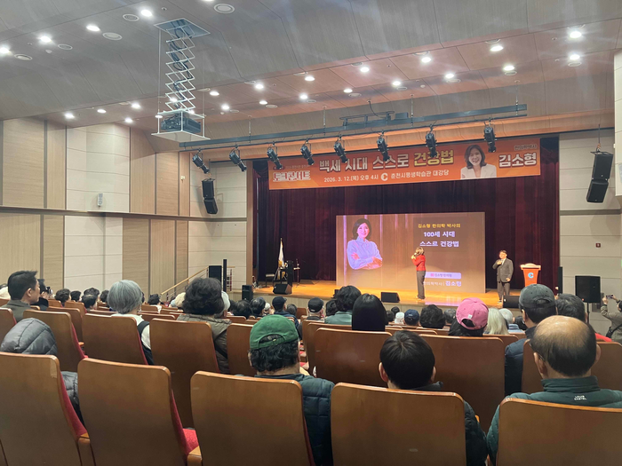 [스포츠서울ㅣ춘천=김기원 기자]춘천시 평생학습관(관장 원옥연)은 12일 춘천시평생학습관 대강당에서 ‘백세 시대 스스로 건강법’이라는 주제로 김소형 한의학박사와 함께한 춘천시민 충전UP! 토크콘서트를 성황리에 마쳤다.