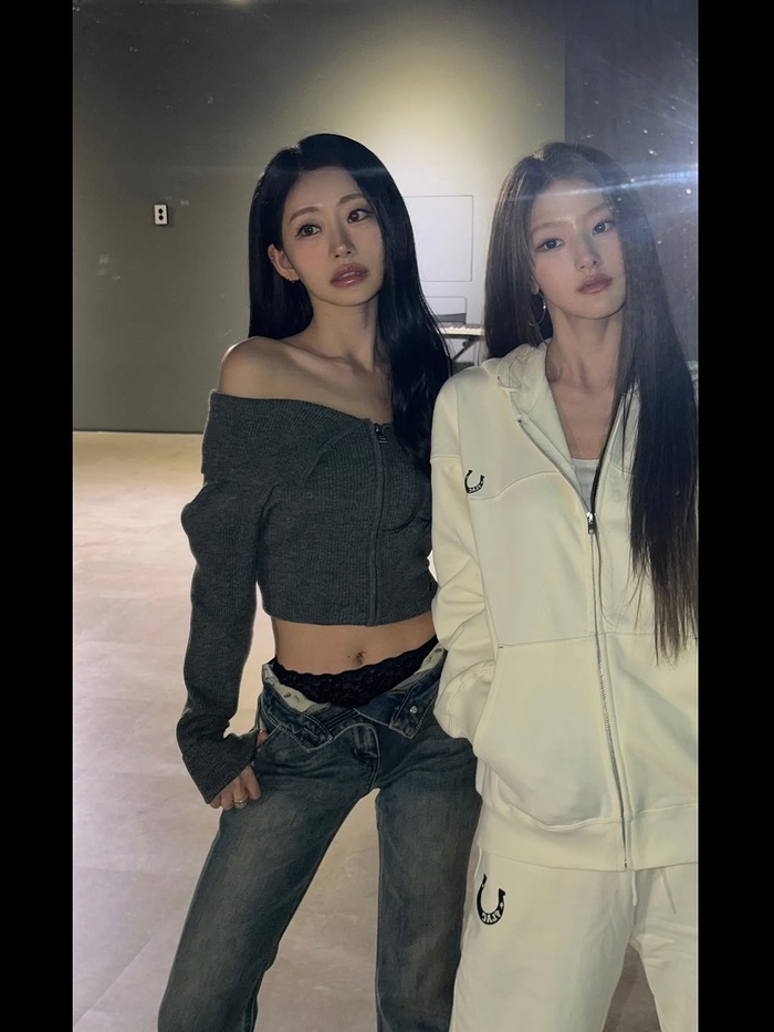 특히 두 사람은 연습실로 보이는 공간에서 나란히 서서 카메라를 바라보며 각기 다른 매력을 발산했다. 힙한 스타일의 쥴리와 청순한 분위기의 하늘이 어우러지며 완벽한 비주얼 케미를 완성했다.