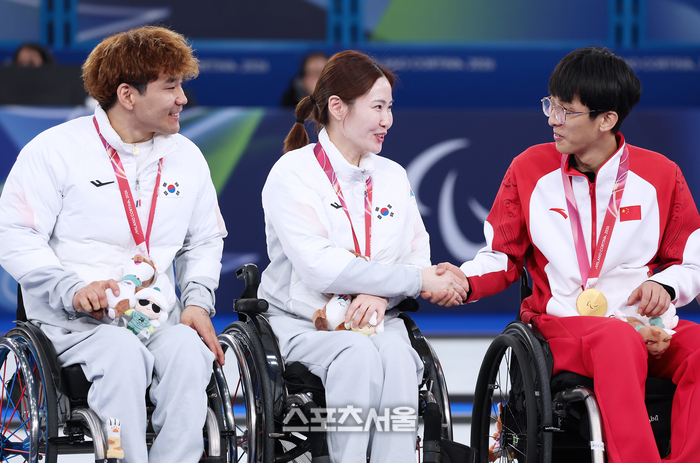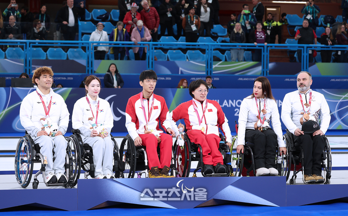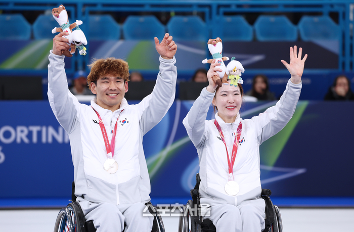 한국 휠체어컬링 믹스더블 국가대표 백혜진-이용석 조가 11일(현지시간) 이탈리아 코르티나담페초의 코르티나 올림픽 컬링 스타디움에서 열린 2026 밀라노·코르티나담페초 동계패럴림픽 휠체어컬링 믹스더블 중국과의 결승에서 은메달을 획득했다.