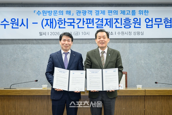〔스포츠서울│수원=좌승훈기자〕경기 수원시는 13일 시청 상황실에서 (재)한국간편결제진흥원과 업무협약을 체결하고, 외국인 관광객의 결제 편의성을 높이는데 힘을 합친다.