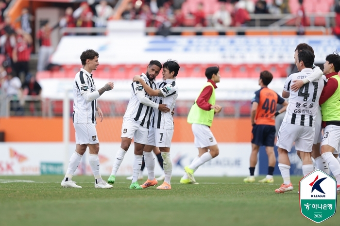 김기동 감독이 지휘하는 서울은 15일 제주월드컵경기장에서 열린 ‘하나은행 K리그1 2026’ 3라운드 제주SK와 원정 경기에서 1-1로 맞선 후반 추가 시간 이승모의 헤더 결승포로 2-1 신승했다.