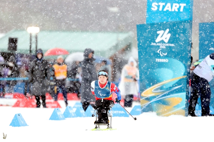 김윤지는 15일(현지시간) 이탈리아 테세로 크로스컨트리 스타디움에서 열린 2026 밀라노·코르티나 동계패럴림픽 크로스컨트리 스키 여자 20㎞ 인터벌 스타트 좌식에서 58분23초3의 기록으로 금메달을 목에 걸었다.