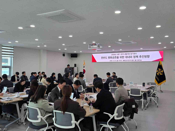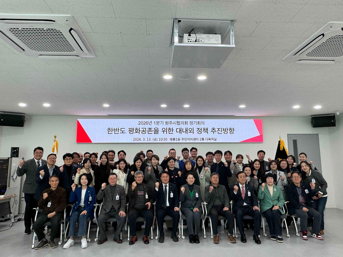 [스포츠서울ㅣ원주=김기원 기자]민주평화통일자문회의 원주시협의회(회장 김금주)는 지난 13일 명륜1동 주민자치센터에서 자문위원 등 60여 명이 참석한 가운데, ‘한반도 평화공존을 위한 대내외 정책 추진방향’을 주제로 2026년 1분기 정기회의를 개최했다.