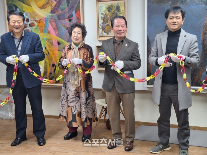 행사는 기념 테이프 커팅식으로 막을 올렸다. 참석자들은 손욱 작가의 수상을 축하하며 전시의 시작을 알렸고, 이어 건배사와 함께 작가의 작품 세계를 공유하는 시간을 가졌다. 이후 손욱 작가가 직접 주요 작품에 대한 설명을 진행해 참석자들의 이해를 도왔다. 행사는 다과회를 끝으로 화기애애한 분위기 속에서 마무리됐다.