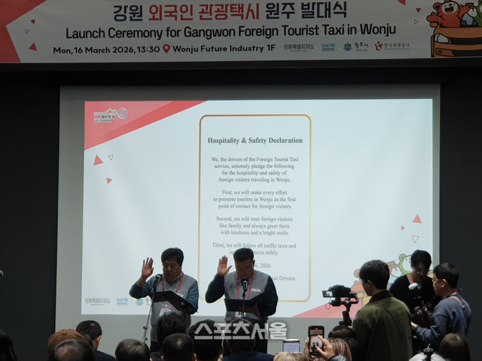 [스포츠서울ㅣ원주=김기원 기자]원주시는 3월 16일 원주미래산업진흥원 1층 컨퍼런스룸에서 2026 강원 외국인 관광택시 원주발대식을 개최했다.