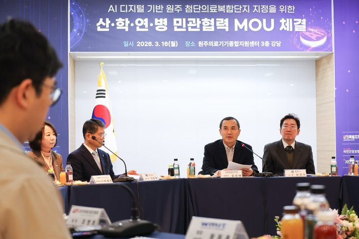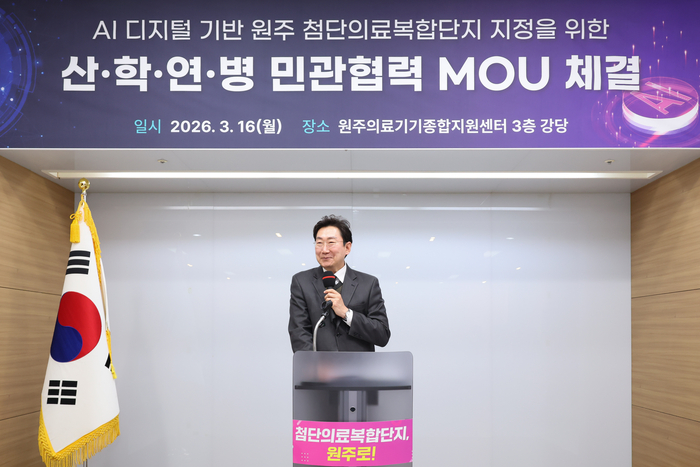 원주시는 16일 원주의료기기종합지원센터에서 ‘첨단의료복합단지 원주 지정을 위한 산·학·연·병 민관협력 업무협약식’을 개최했다.