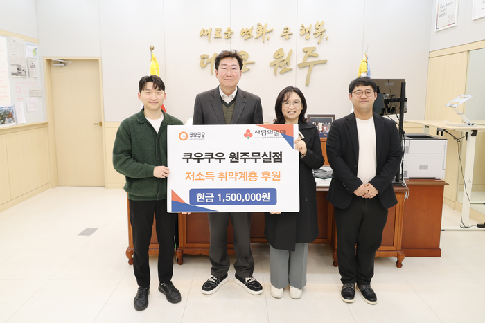 쿠우쿠우 원주무실점(대표 정인서)은 18일 원주시청을 방문해 지역 내 저소득 취약계층을 위한 지정기탁후원금 150만 원을 전달했다.
