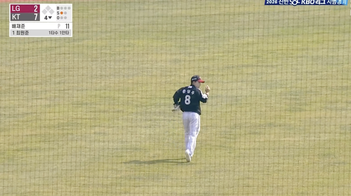 [스포츠서울 | 최승섭기자] 지난 17일 수원 KT위즈파크에서 열린 LG 트윈스와 KT 위즈의 시범경기 도중, 야구장에서는 좀처럼 보기 힘든 황당한 장면이 연출됐다. 이닝 교대 후 수비 위치에 있어야 할 야수 한 명이 보이지 않는 상태에서 경기가 시작된 것이다.