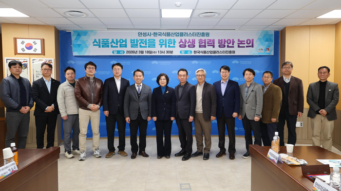 [스포츠서울ㅣ김기원 기자]한국식품산업클러스터진흥원(이사장 김덕호, 이하 식품진흥원)은 지난 18일 식품진흥원에서 김보라 안성시장과 안성지역 식품기업 관계자 등 20여 명이 참석한 가운데 국가식품클러스터 운영현황을 공유하고 식품산업 육성 협력방안을 논의했다고 19일 밝혔다.