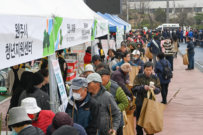 원주시와 북부지방산림청이 주최하고 산림조합과 원주시 조경협회가 후원하는 이번 행사는, 탄소흡수원으로서 미세먼지 저감과 기후변화 대응에 중요한 역할을 하는 나무를 시민들에게 나눠 주며 나무심기 문화를 확산하기 위해 마련됐다.