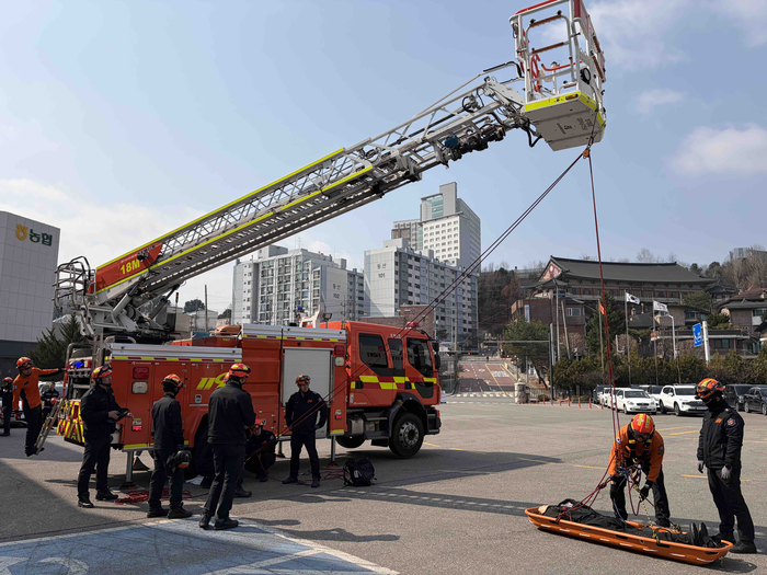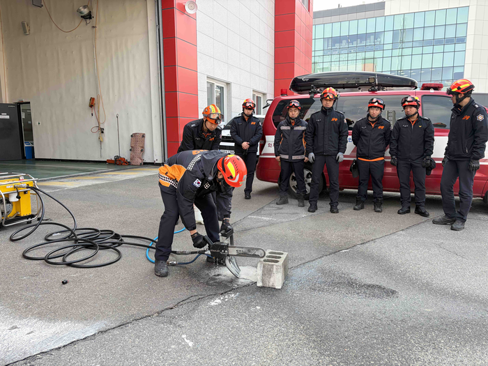 주요 내용으로는 ▲지반침하사고 대응절차(SOP329) 이론교육 ▲영상탐지기 및 내시경카메라를 활용한 매몰자 수색 ▲지지대 및 에어백 설치 방법 숙달 ▲유압 콘크리트 절단세트 사용법 교육 ▲다목적 구조삼각대를 활용한 인명구조훈련 ▲구조공작차 크레인 및 사다리차를 활용한 구조기법 훈련 등이 포함됐다.