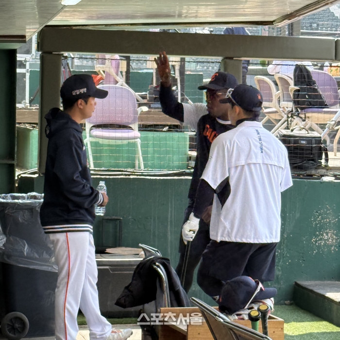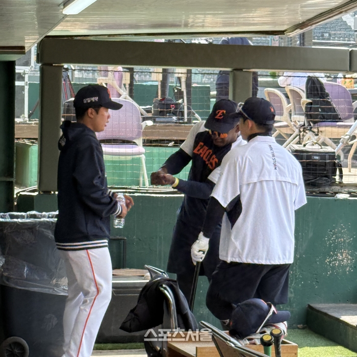 21일 사직 롯데전 앞두고 페라자에게 ‘몸쪽 대응법’ 원포인트 레슨 요청