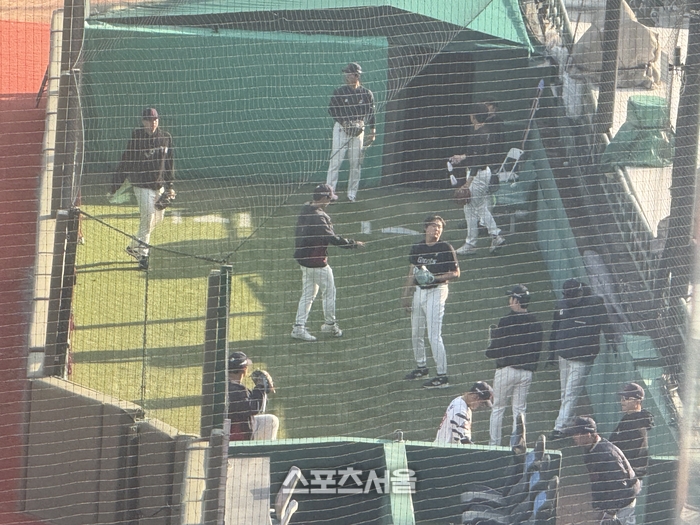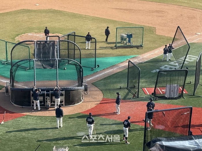 훈련은 체계적이고 밀도 있게 진행됐다. 좌측에서는 비거리와 타구 힘을 키우는 롱배팅이, 중앙에서는 배팅볼 투수가 던지는 실전 타격이, 우측에서는 피칭 머신을 활용한 빠른 공 대처 훈련이 쉼 없이 이어졌다. 스프링캠프에서 소화했던 ‘지옥 훈련’의 강도가 시즌 개막을 일주일 앞둔 시점에서도 그대로 유지되고 있는 셈이다.