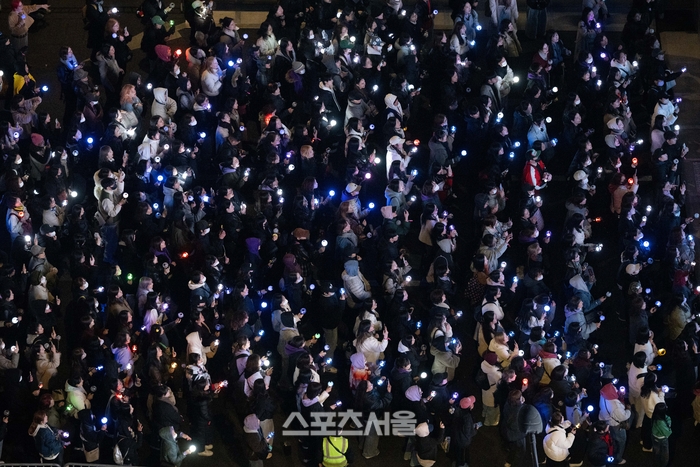 3년 9개월 만에 완전체로 복귀하는 방탄소년단(BTS)의 ‘BTS 컴백 라이브: ARIRANG’ 공연이 21일 서울 광화문광장 일대에서 펼쳐지는 가운데 팬덤 ‘아미(ARMY)’가 응원봉을 빛내고 있다. 이번 공연은 세계 190개국에 생중계된다. 2026.03.21 사진공동취재단