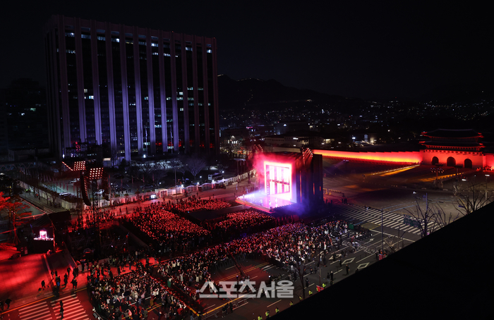 연예 | 가요(음악) [포토]방탄소년단의 컴백 무대가 된 광화문 입력2026-03-21 20:39:52 북마크 페이스북 트위터 SNS 더보기 가글자크기설정 인쇄 SNS 더보기 닫기 네이버밴드 네이버블로그 URL복사 글자크기 설정 메뉴 닫기 글자크기 설정 시 다른 기사의 본문도동일하게 적용됩니다. 가 가 가 가 가 방탄소년단(BTS)이 21일 서울 광화문광장에서 컴백 기념 공연인 ‘BTS 컴백 라이브: 아리랑’을 펼치고 있다. 2026.3.21 사진공동취재단 기사추천 0