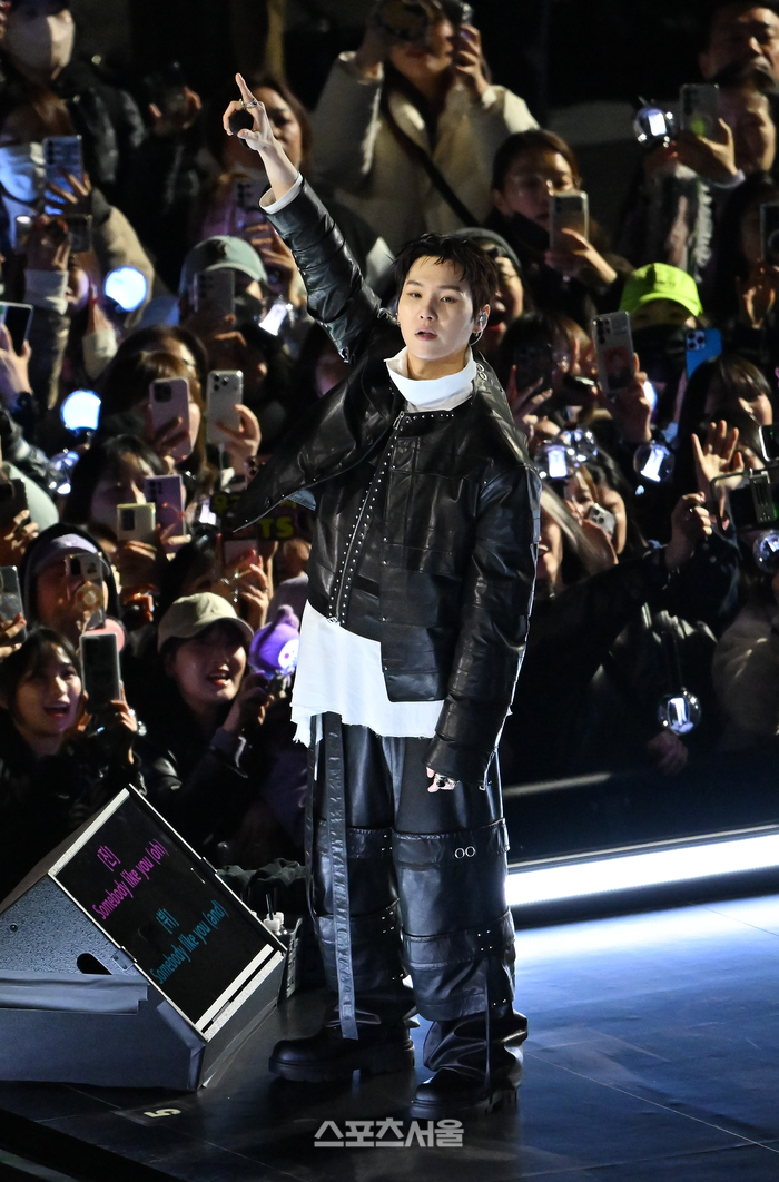 그룹 방탄소년단(BTS) 슈가가 21일 서울 광화문 광장에서 무료 복귀 공연 ‘BTS 컴백 라이브: 아리랑’(BTS THE COMEBACK LIVE | ARIRANG)을 선보이고 있다. 2026.03.21. =사진공동취재단