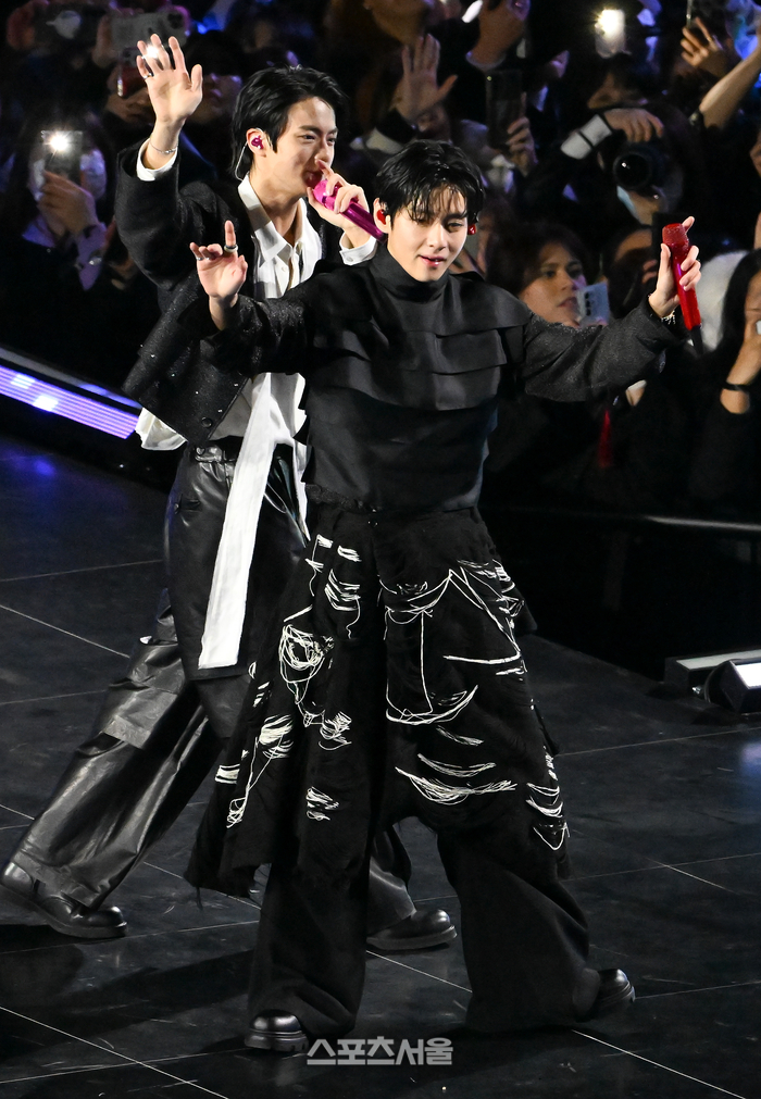 그룹 방탄소년단(BTS) 뷔가 21일 서울 광화문 광장에서 무료 복귀 공연 ‘BTS 컴백 라이브: 아리랑’(BTS THE COMEBACK LIVE | ARIRANG)을 선보이고 있다. 2026.03.21. =사진공동취재단