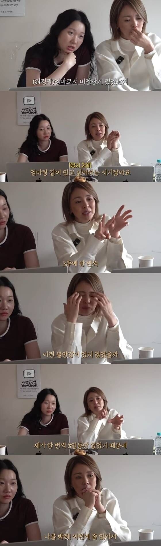 이어 그는 “3주에 한 번씩 3일 동안 집에 없는 상황이 약 3년 정도 이어졌다”며 “사랑이에게 ‘3일은 엄마가 없다’는 인식이 생겼던 것 같다”고 설명했다. 이어 “그 시기 영향인지 사랑이가 불안함을 느꼈던 게 아닐까 생각한다”며 “지금도 엄마에게 ‘나를 봐줘’라고 표현하는 부분이 있다”고 미안해했다.