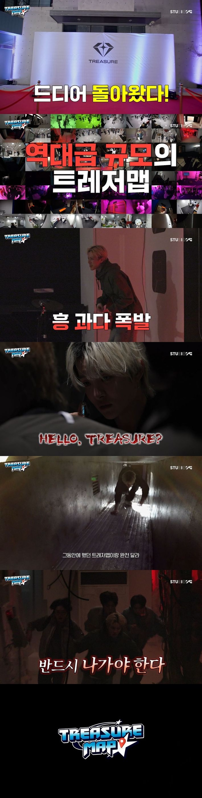 혼비백산하며 도망치는 멤버들의 모습과 함께 “기존의 트레저맵과는 완전히 다르다”, “목표는 여기서 나가는 것”이라는 긴박한 외침이 이어지며 이번 시즌이 단순한 리얼리티를 넘어 고퀄리티 미션 수행형 예능이 될 것임을 예고했다. 더욱 단단해진 팀워크로 무장한 트레저가 거대한 세트장의 비밀을 풀고 탈출에 성공할 수 있을지가 관전 포인트다.