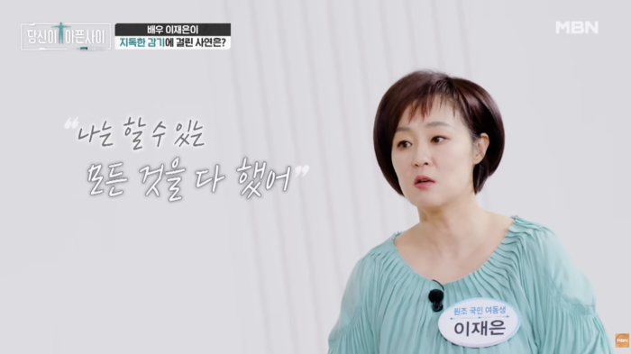 22일 방송된 MBN ‘당신이 아픈 사이’에 출연한 이재은은 4세라는 어린 나이에 데뷔한 이후 쉼 없이 달려와야만 했던 이유와 그 과정에서 겪었던 고통의 시간들을 털어놓았다.