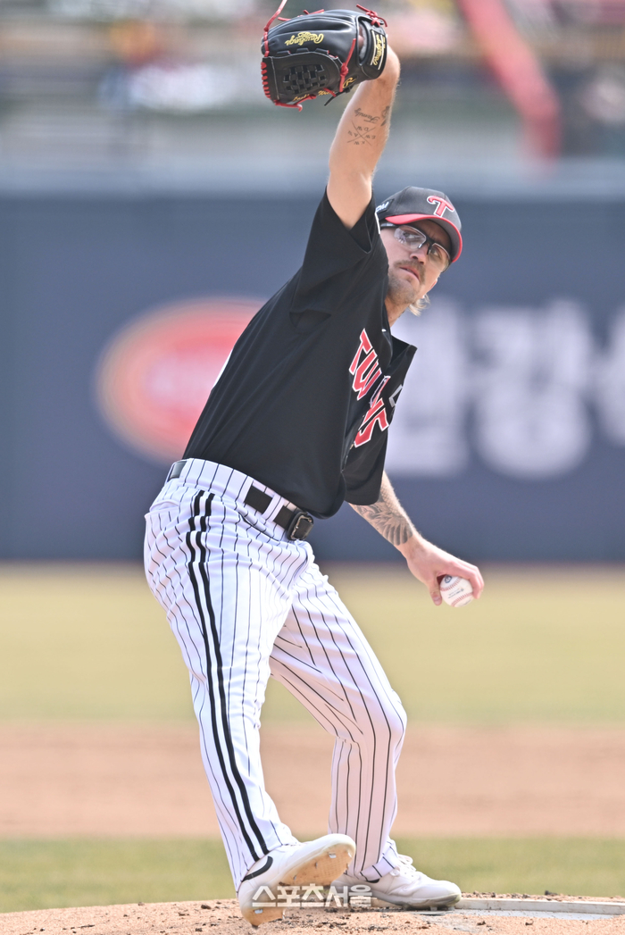 [스포츠서울 | 잠실=강윤식 기자] 첫 시범경기 등판에서 썩 좋지 못했다. 마지막 시범경기에서는 지난해 몸담았던 키움을 맞아 나아진 모습을 보였다. 물론 숙제도 남겼다. LG 아시아쿼터 라클란 웰스(29)가 마지막 점검을 마쳤다.