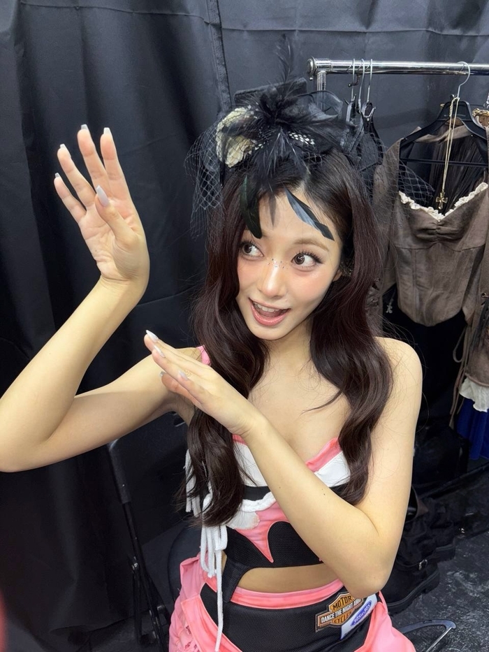 공개된 사진 속 쯔위는 무대 의상을 입고 화려한 비주얼을 자랑하고 있다. 특히 미니 해트와 깃털 장식이 돋보이는 헤어 액세서리를 완벽하게 소화하며 독보적인 분위기를 자아냈다.