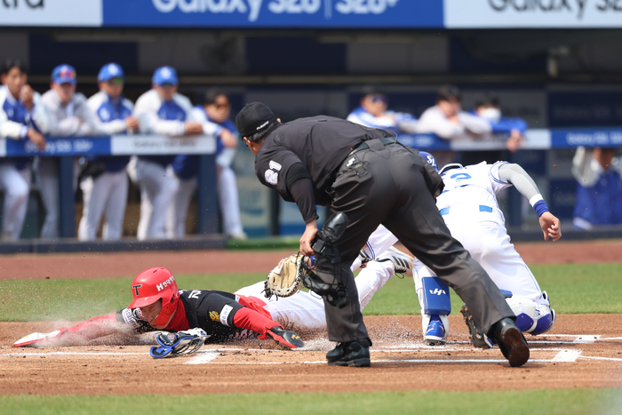 1회 KIA가 먼저 점수를 냈다. 김호령 볼넷, 김도영 좌전 안타, 상대 포일로 1사 2,3루다. 카스트로가 3루 땅볼을 쳤다. 삼성 3루수 김영웅이 홈으로 던졌으나, 김호령이 먼저 홈에 들어와 1-0이다.