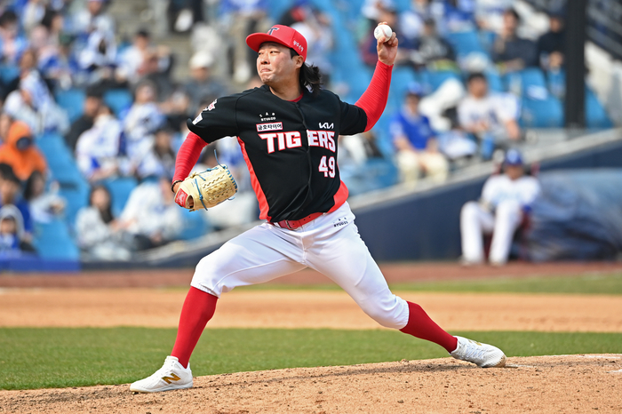 2025시즌 후 FA가 된 김범수는 지난 1월 KIA와 계약했다. 사실 한화와 재계약이 유력해 보였다. 의외로 지지부진했다. 불펜 보강을 노린 KIA가 막판 빠르게 움직였다. 3년 총액 20억원에 도장을 찍었다.