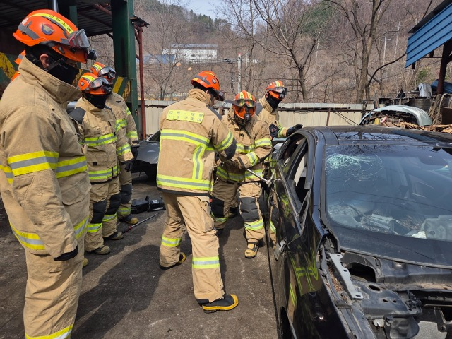 [스포츠서울ㅣ김기원 기자]강원특별자치도 태백소방서(서장 심규삼)는 25일 강원종합폐차장에서 교통사고 재난현장 대응능력 향상을 위한 인명구조훈련을 실시했다고 밝혔다.