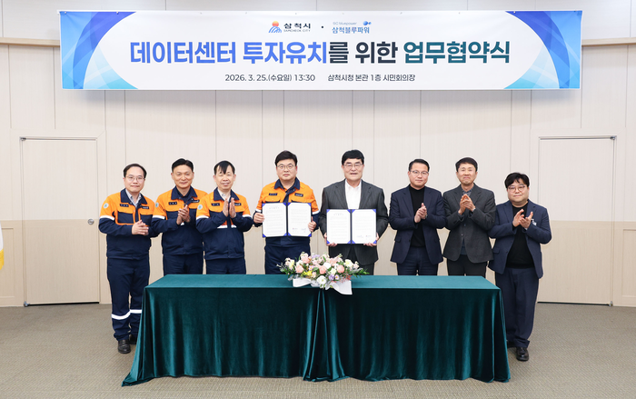 [스포츠서울ㅣ김기원 기자]삼척시와 삼척블루파워는 25일 삼척시청 시민회의장에서 “데이터센터 투자유치를 위한 업무협약(MOU)”을 체결했다.
