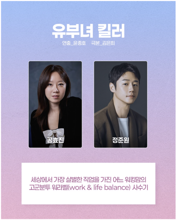 ‘유부녀 킬러’는 세상에서 가장 살벌한 직업을 가진 워킹맘의 고군분투 ‘워라밸’(Work-Life Balance) 사수기를 그린 드라마다. 동명의 카카오웹툰을 원작으로 하며 실제 ‘킬러’로 살아가는 유부녀의 치열한 삶을 그릴 예정이다.