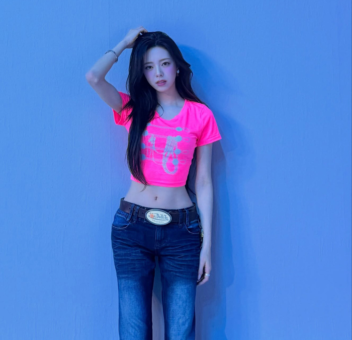 공개된 사진 속 유나는 화사한 핑크 컬러의 크롭 티셔츠와 보디라인이 드러나는 타이트한 데님 팬츠를 착용해 군더더기 없는 슬림한 실루엣을 자랑했다.