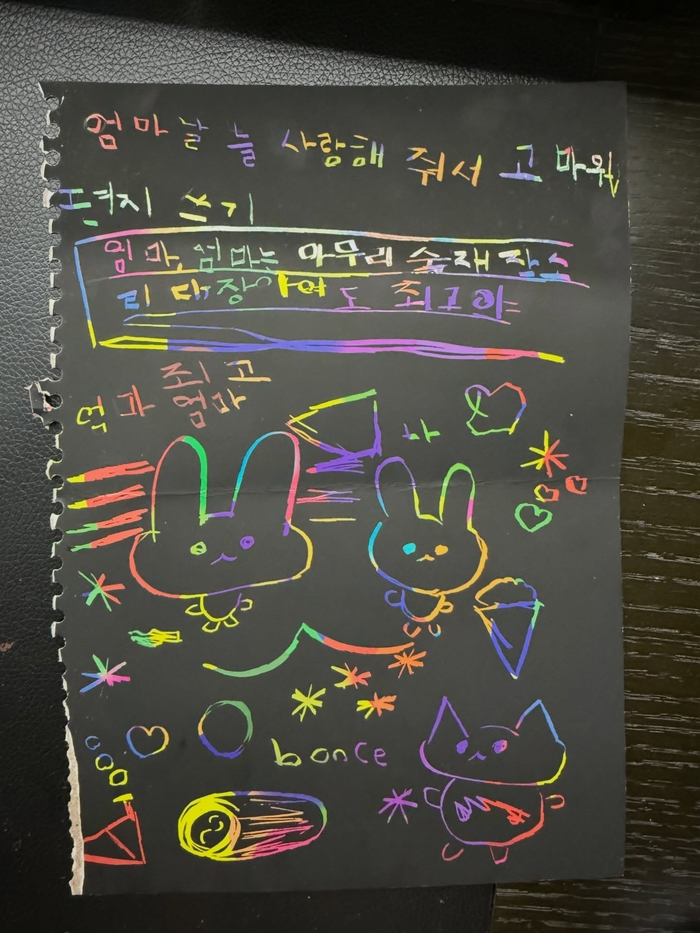공개된 사진 중 자녀가 정성스레 작성한 것으로 보이는 편지가 눈길을 끈다. 무지개색 펜으로 꾹꾹 눌러 쓴 편지에는 “엄마 날 늘 사랑해 줘서 고마워”, “엄마는 아무리 숙제 잔소리 대장이어도 최고야”라는 문구가 담겨 있다.
