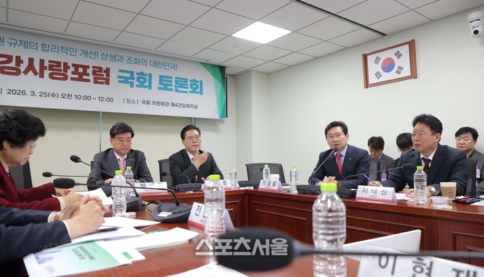 〔스포츠서울│용인=좌승훈기자〕이상일 용인특례시장은 25일 국회 의원회관 제4간담회의실에서 열린 제2기 한강사랑포럼 토론회에서“우리는 글로벌 경쟁이 치열한 시대에 살고 있고, 산업구조도 44년 전 수도권정비계획법이 제정된 때와는 크게 달라진 만큼 현실에 맞지 않는 법의 규제를 합리적으로 개선해야 한다”며 “자연보전권역에 대한 불합리한 규제를 혁파하는 등 수도권정비계획법을 전면 개정해야 한다”고 강조했다.