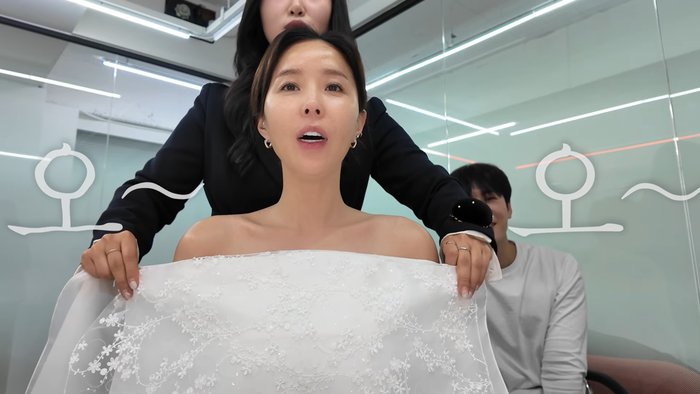 25일 유튜브 채널 ‘어떠신지?!?’에서 예비 신부 신지는 예비 신랑 문원과 함께 웨딩 퍼스널 컬러를 진단 받았다. 영상에서 신지는 결혼을 앞두고 철저한 자기관리를 통해 완성된 모습으로 등장하여 다양한 드레스를 소화했다.