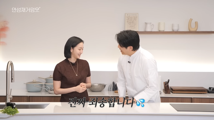 작품 소개를 들은 안성재 는 “진짜 죄송한데 제가 ‘유미의 세포들’을 잘 모른다”라고 고백하며 연신 사과했다. 예상치 못한 셰프의 솔직한 발언에 김고은 은 웃음을 터뜨렸고, 안성재 는 시청자들을 향해서도 “잘 모르시는 분들 계실 텐데 진짜 죄송하다”라며 거듭 고개를 숙였다.