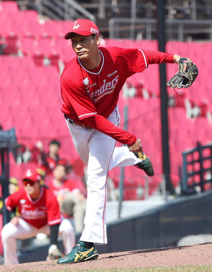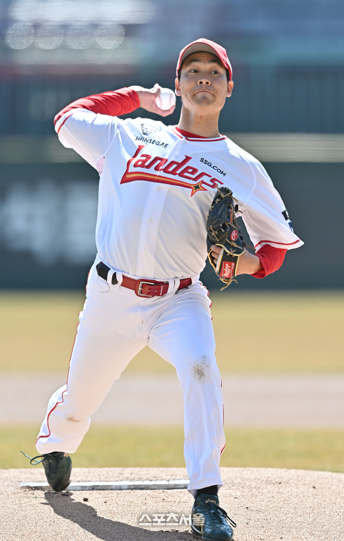 SSG 타케다 쇼타(33)가 마지막 실전 점검에서 합격점을 받았다. 경헌호(49) 투수총괄 코치는 “다양한 구종을 점검하는 모습이 좋았다”고 평가했다.