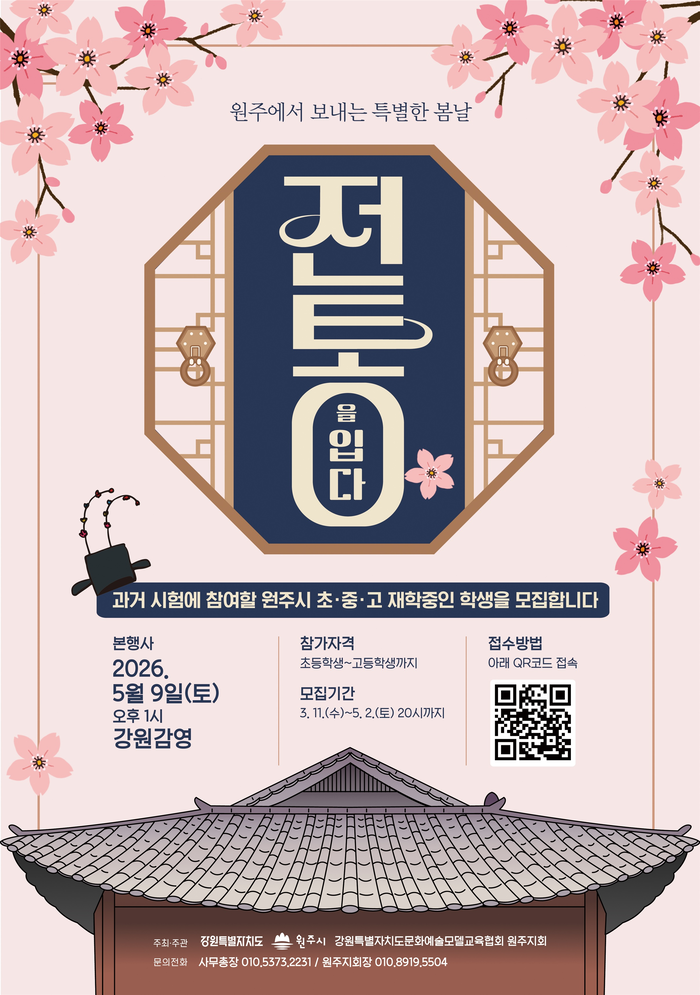 [스포츠서울ㅣ원주=김기원 기자]원주시와 강원특별자치도문화예술모델교육협회가 주관하는 원주패션페스티벌 ‘원주에서 보내는 특별한 봄날, 전통을 입다’에서 페스티벌 내 다양한 행사에 참여할 학생과 시민 모델을 공개 모집한다.