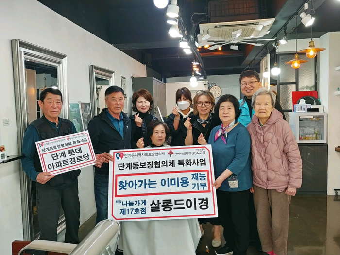 살롱드이경은 단계동지역사회보장협의체 희망나눔가게 17호점으로, 고령자 등 취약계층을 초청하거나 찾아가는 이미용 봉사를 통해 협의체 특화사업 활성화에 기여하고 있다.
