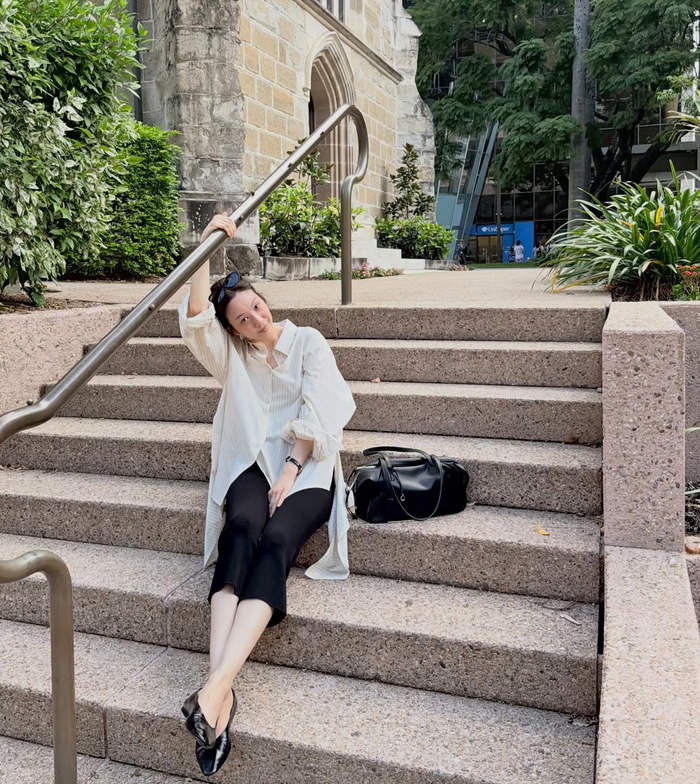 공개된 사진 속 정려원은 화창한 날씨 아래 호주 브리즈번의 거리를 배경으로 여유로운 시간을 즐기고 있다.