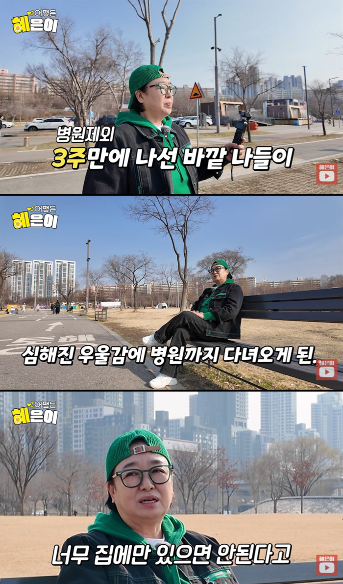이날 혜은이는 오랜만에 한강에 나오며 “병원 가는 거 빼고는 3주 만에 나왔다”고 말했다. 그는 “제가 요즘 우울하다. 심할 정도다. 그래서 병원을 다녀왔다”며 “나이가 들면 계절이 바뀔 때 그런 우울감이 올 수 있다고 하더라”라고 설명했다.