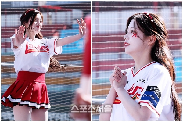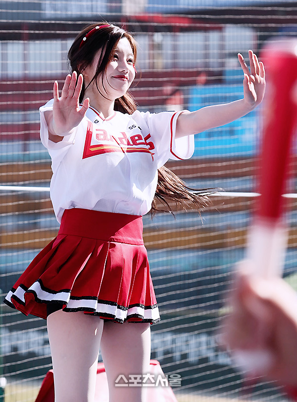 ‘프로야구 시범경기’ SSG 랜더스와 키움 히어로즈의 경기에서 SSG 치어리더 강지은이 열띤 응원전을 유도하고 있다. 강지은 치어리더는 경기도 평택의 한 미용실 대표 원장으로 알려졌다. 프로야구 치어리더는 이번이 처음.