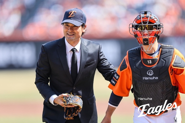 [스포츠서울 | 대전=박연준 기자] 마운드 위에 선 ‘코리안 특급’의 몸을 감싼 것은 주황색 유니폼이 아닌 단정한 검은색 양복이었다. 18년 만의 대전 홈 개막전이라는 축제의 장에서 박찬호(53)가 보여준 의상 선택에서 ‘레전드의 품격’, ‘멋진 어른’의 모습이 보였다.