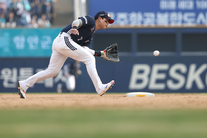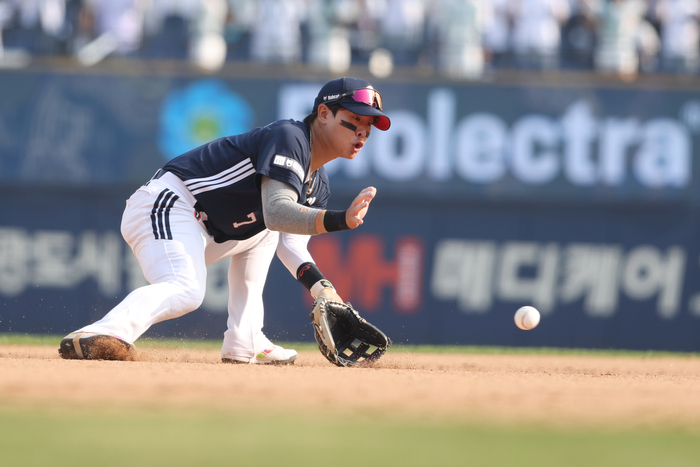 “사이드 스핀이 심하게 걸려가지고…. 이건 (유격수가) 누구였어도 못잡는 타구였습니다”라며 양손을 동원해 타구에 걸린 회전을 묘사했다. 0-4로 뒤진 6회말 2사 1루에서 박민우의 빗맞은 타구를 놓쳐 이닝을 끝낼 기회를 날렸다. 이 실책이 빌미가 돼 맷 데이비슨의 우중간 2루타로 두 점 더 내주고 사실상 백기를 들었다.