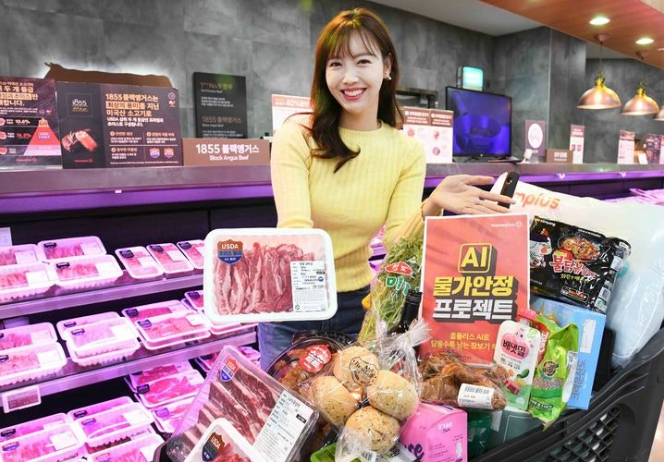 홈플러스는 AI 물가안정 프로젝트를 다음 달 1일까지 진행한다. 마이홈플러스 멤버십 회원에게 ‘미국산 초이스 냉동 LA식 꽃갈비(1.4㎏)’를 1만원 할인한 5만 4900원에 판매하고, ‘미국산 갈비살(100g)’은 40% 할인가에, ‘청도 미나리(봉)’는 2천원 할인해 2990원에, 싱싱한 ‘통영 햇멍게(120g)’는 50% 할인한 가격으로 판매한다.