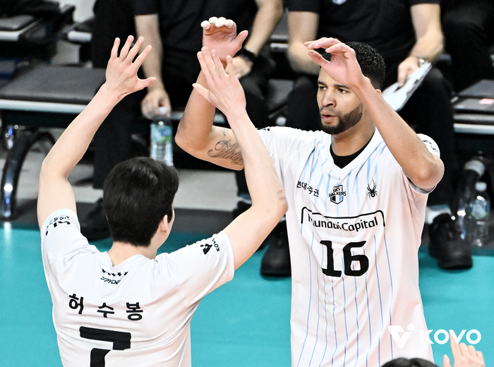 쉽지만은 않았다. 현대캐피탈은 1차전에 이어 이날도 1~2세트를 연달아 내줘 패색이 짙었다. 3세트를 따냈으나 4세트에도 20점 이후 승부에서 밀렸다. 그러나 허수봉의 서브 때 연속 득점으로 듀스로 끌고 갔고, 41-39로 승리했다. 그리고 5세트에서도 이시우의 서브로 분위기를 반전, 기어코 웃었다.